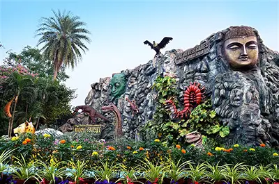 This is a scary one! One of the most popular rides in the park, it is the first dark ride in India. Fear the unknown as you await your turn in the boat. The paddle wheel churns the water, which propels the boat into the canal. Suddenly, you find yourself inside a cave surrounded by dinosaurs, volcanic eruptions and a forest fire. As the boat takes a bend, a big T-Rex lunges to get you.