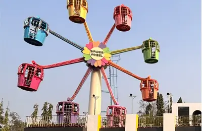 Spin into fun this New Year on our brand-new, family-friendly ride, the Spider Wheel! Standing tall with a 36-foot diameter, it features 8 gondolas, each seating up to 4 visitors, for a total of 32 smiles per trip. With a quick 6-minute ride time, including boarding and de-boarding, it's designed to delight up to 320 visitors per hour! Perfect for all ages, the Spider Wheel is your ticket to laughter, memories, and endless fun!